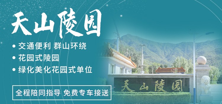 天山陵园相关介绍天山陵园坐落在北京市门头沟区军庄镇紧依六环交通便利,距北京市中心28公里。陵园地处燕山山脉,这里群山环绕,溪水潺潺,百花争艳,景色怡人,是忠骨栖息,灵魂长眠的永久田园,是生者为自己保存一段情感、一个怀念故人的理想的地方。2006年通过了ISO质量和环境两项管理体系认证(是北京市第一家通过认证单位)。并荣获北京市“绿化美化花园式单位”称号。
