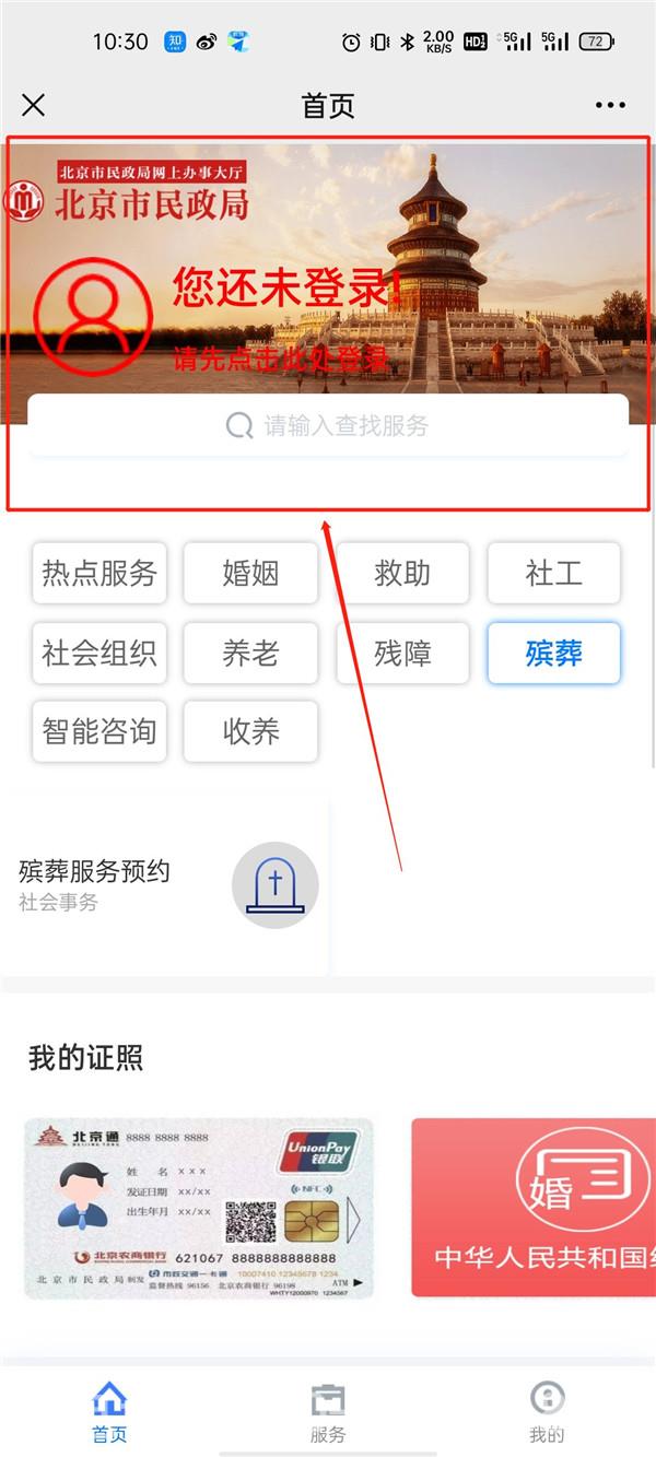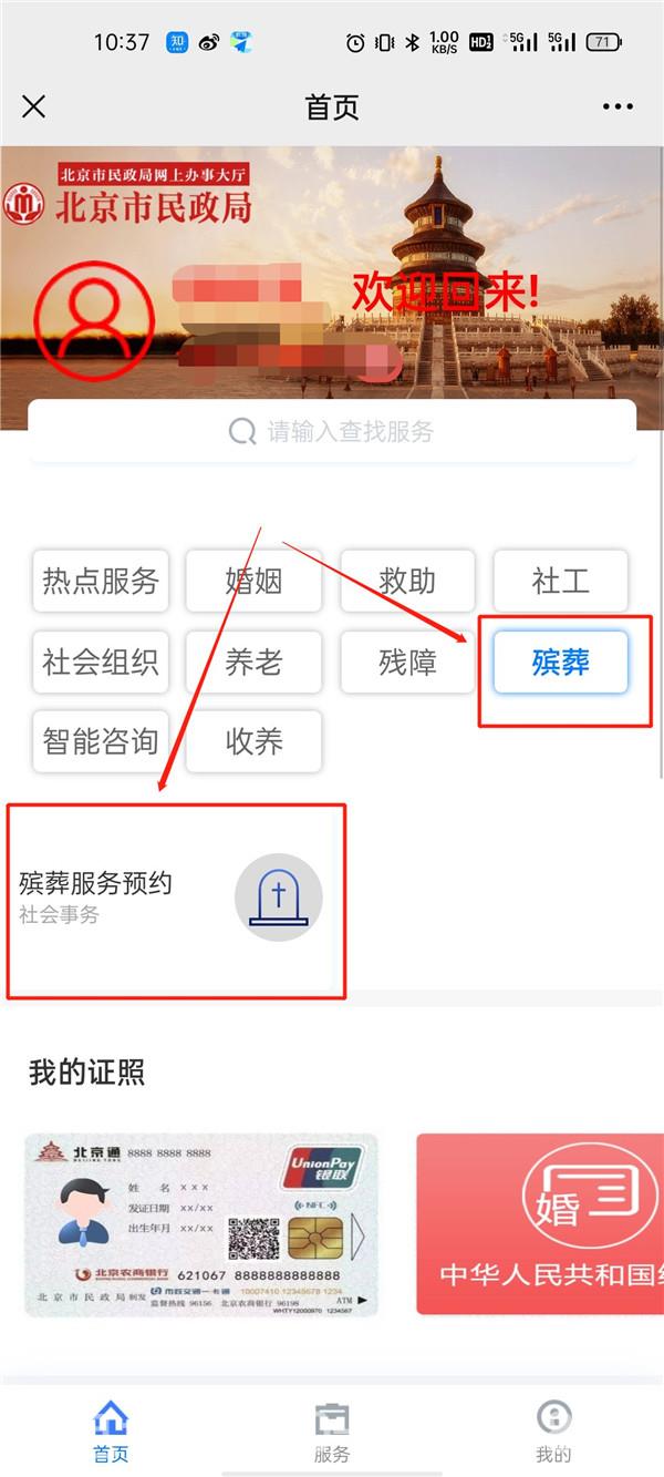 4.登录后,点击“殡葬”-“殡葬服务预约”;